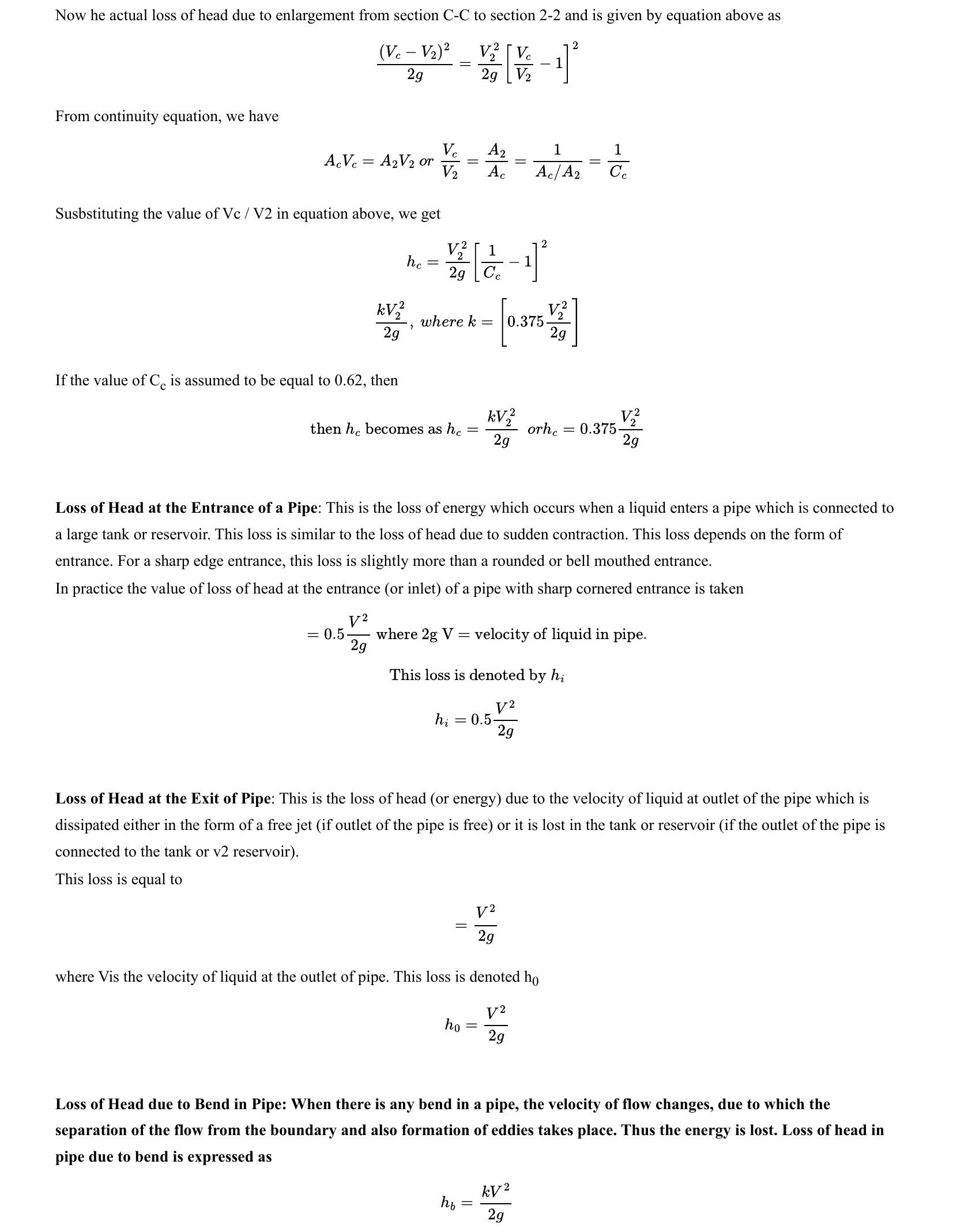 Flow through Pipes: Major and Minor Loss